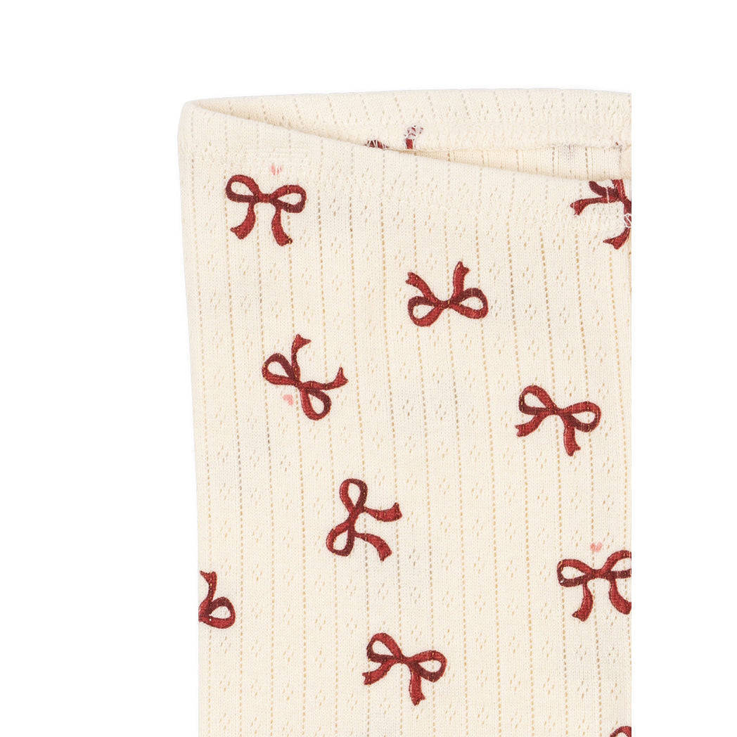 Hübsche Hose in Weiss mit roter Maschen- Illustration und Pointelle Muster.