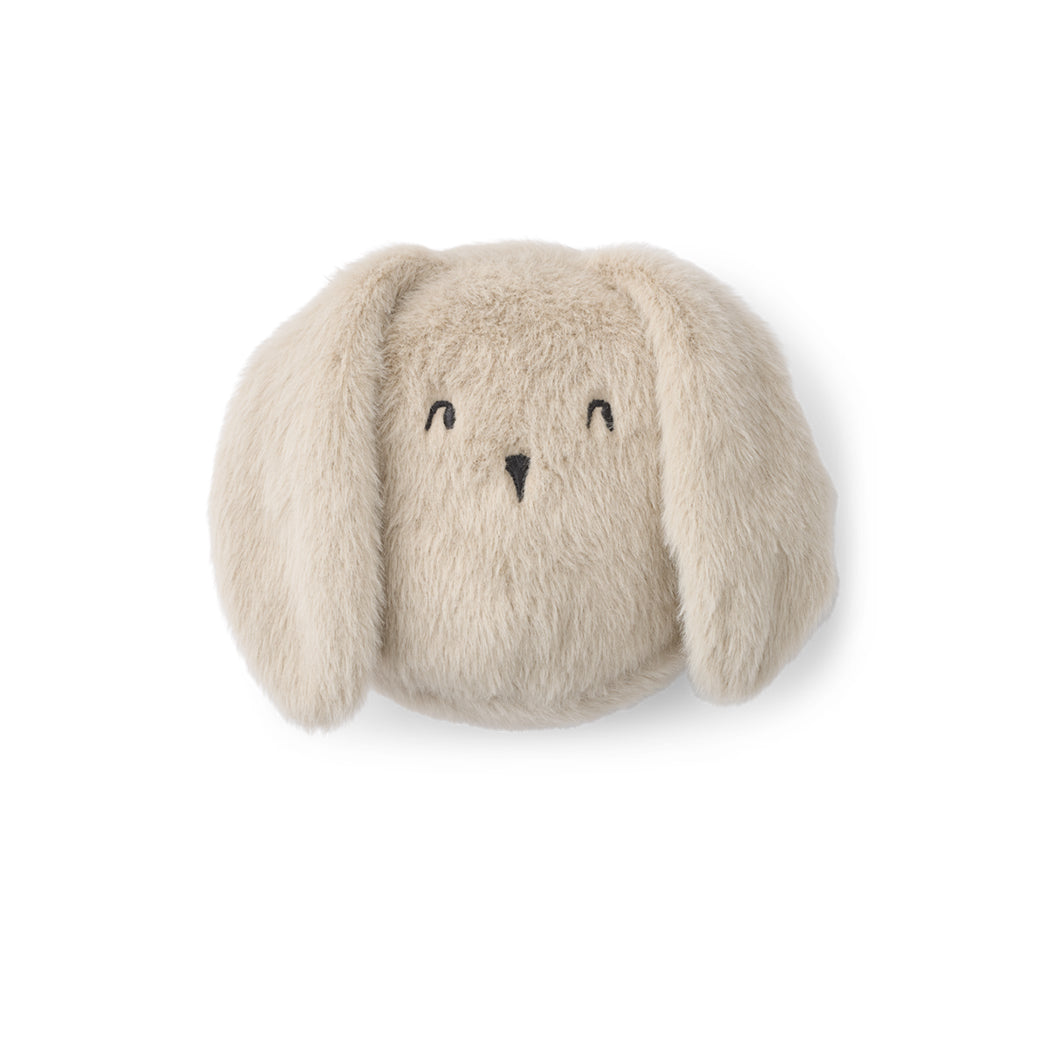 Flauschiges Portemonnaie in Hellgrau mit Hasengesicht.