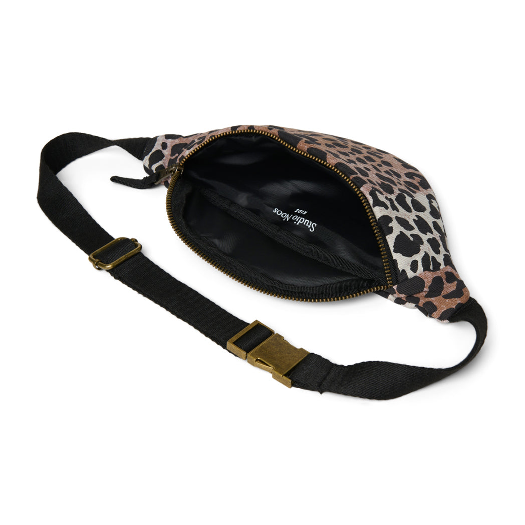 Pretty small fabric bag to hang around in brown with black leo illustration.