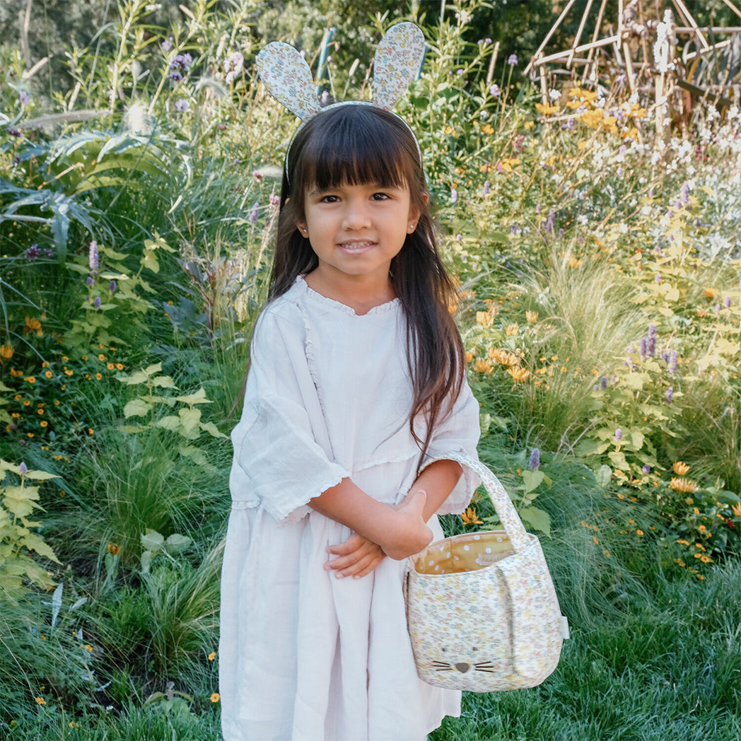 Sweet hairband with rabbit ears in ecru with floral pattern.