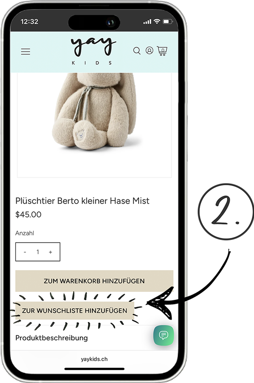 Maintenant, un bouton "Ajouter à la liste de souhaits" apparaît sous chaque article. Avec celui-ci, tu peux ajouter des produits à ta liste.