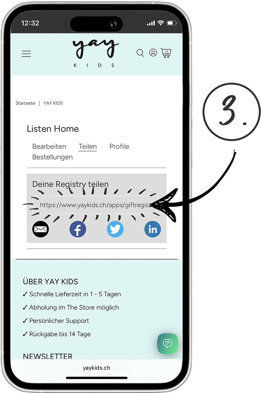 Partagez facilement la liste de cadeaux par lien avec la famille et les amis Informez votre famille et vos amis de vos souhaits. Partagez la liste par lien ou par email.
