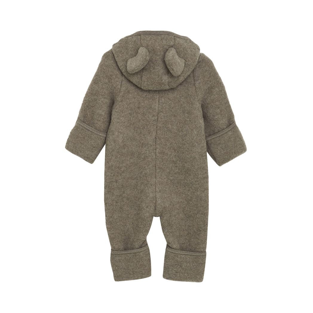 Weicher Wolloverall in Braun meliert und Bärenohren.