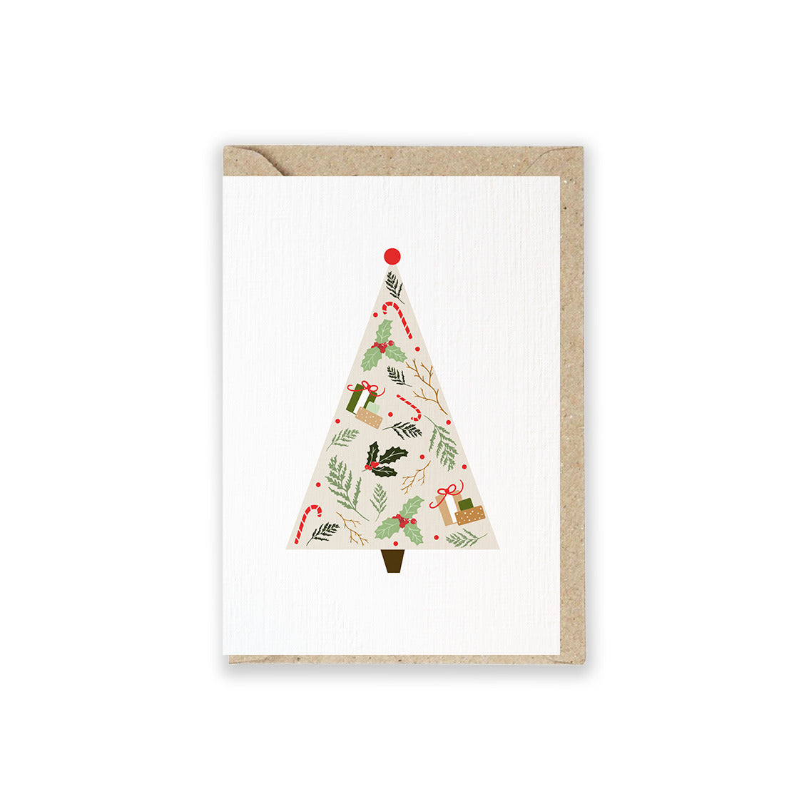 Carte de vœux en blanc avec illustration d'arbre de Noël peinte à la main.