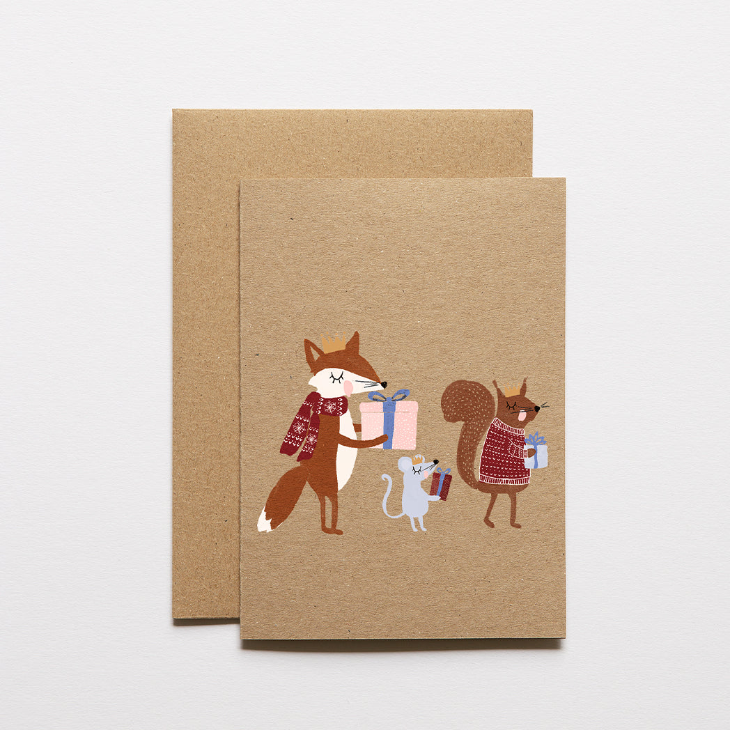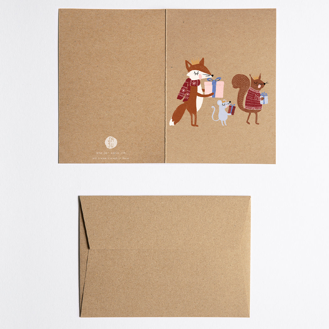 Sandra de Atelier Sasu crée de magnifiques cartes de vœux. Elles sont conçues et imprimées à Berne.Carte de vœux marron avec illustration des 3 Rois.