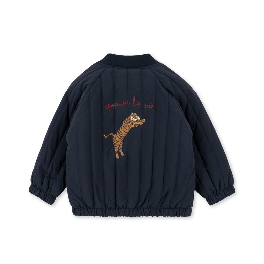 Süsse Bomberjacke in Dunkelblau mit Tiger-Illustration.