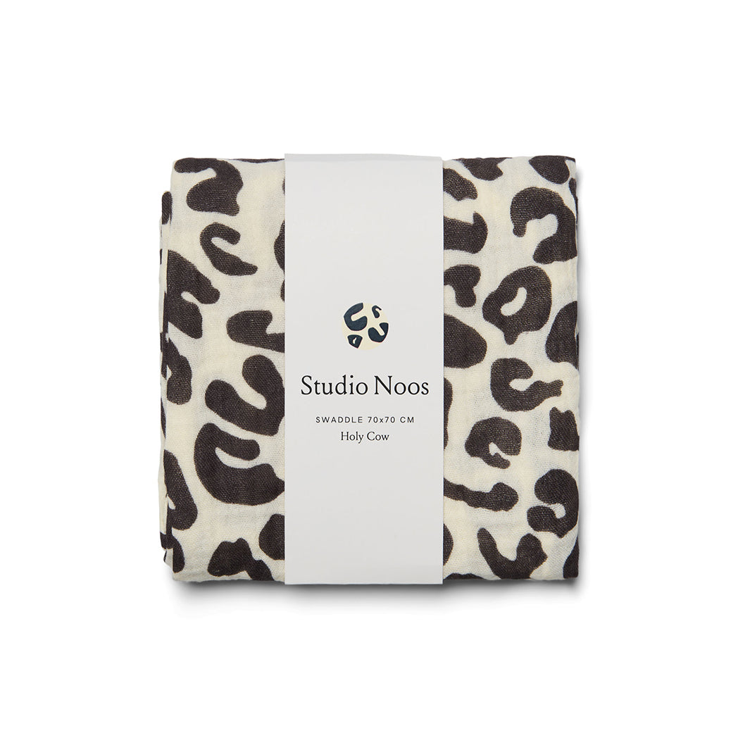 Kleines Nuschi in Ecru mit schwarzem Leo-Muster.