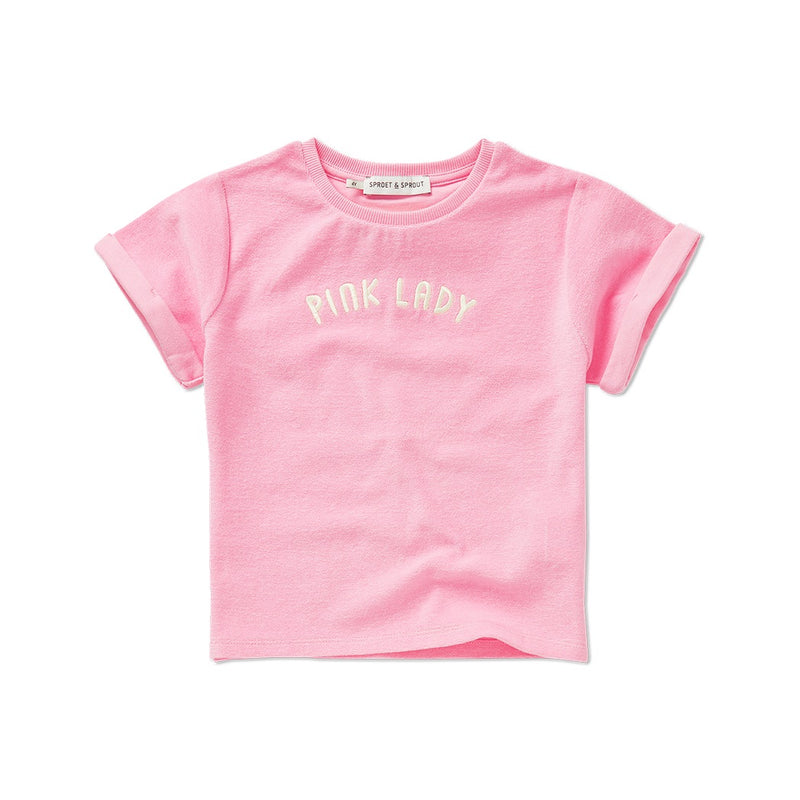 Hübsches Frottée T-Shirt in Pink mit "Pink Lady" Aufschrift.