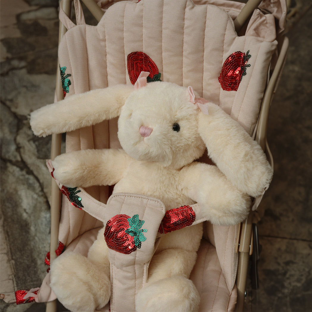 Süsses Puppenbuggy Set in Hellrosa mit Glitzer Erdbeeren-Illustration.