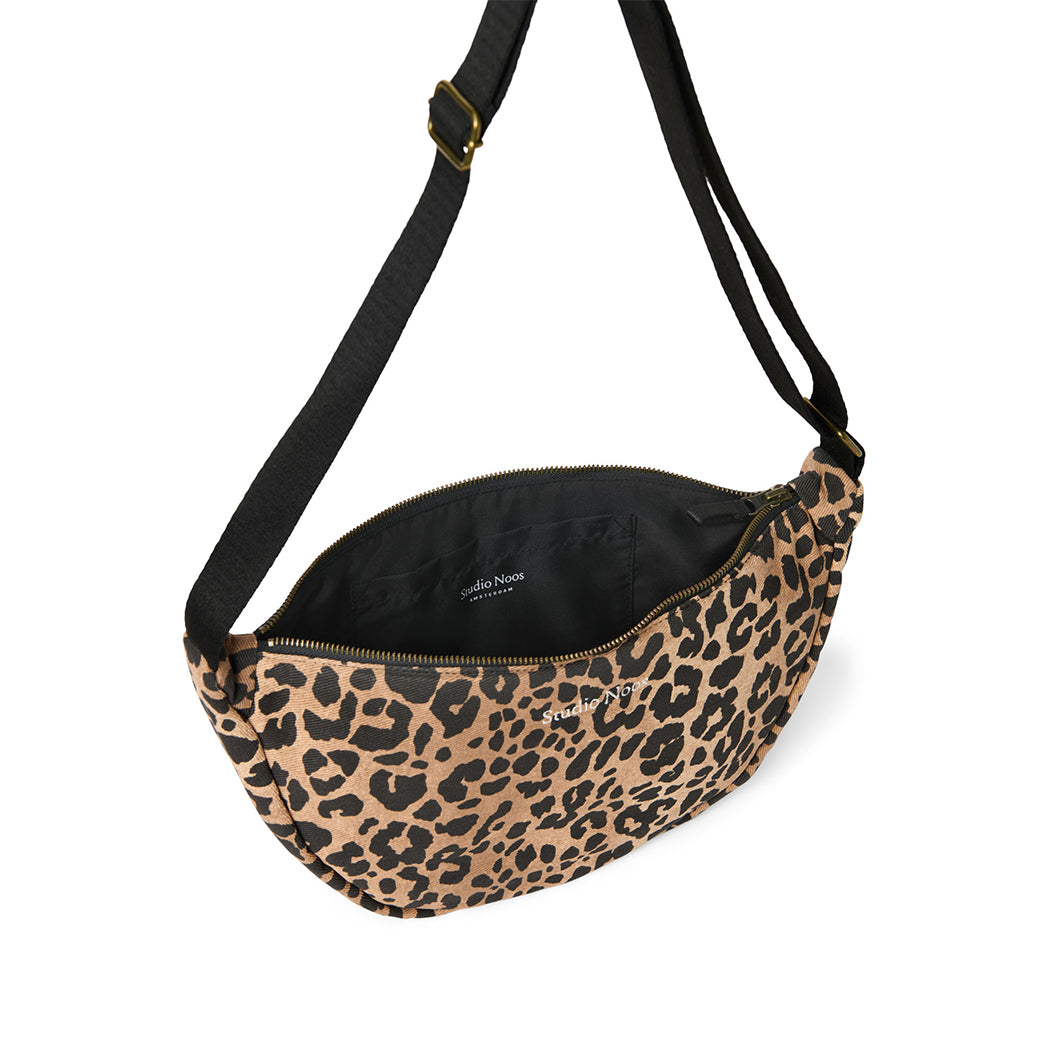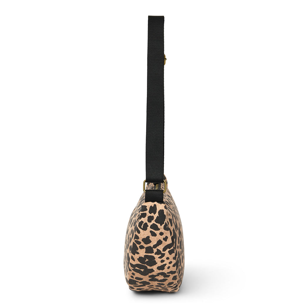Hübsche Tasche zum Umhängen mit beige-braunem Leo-Muster.